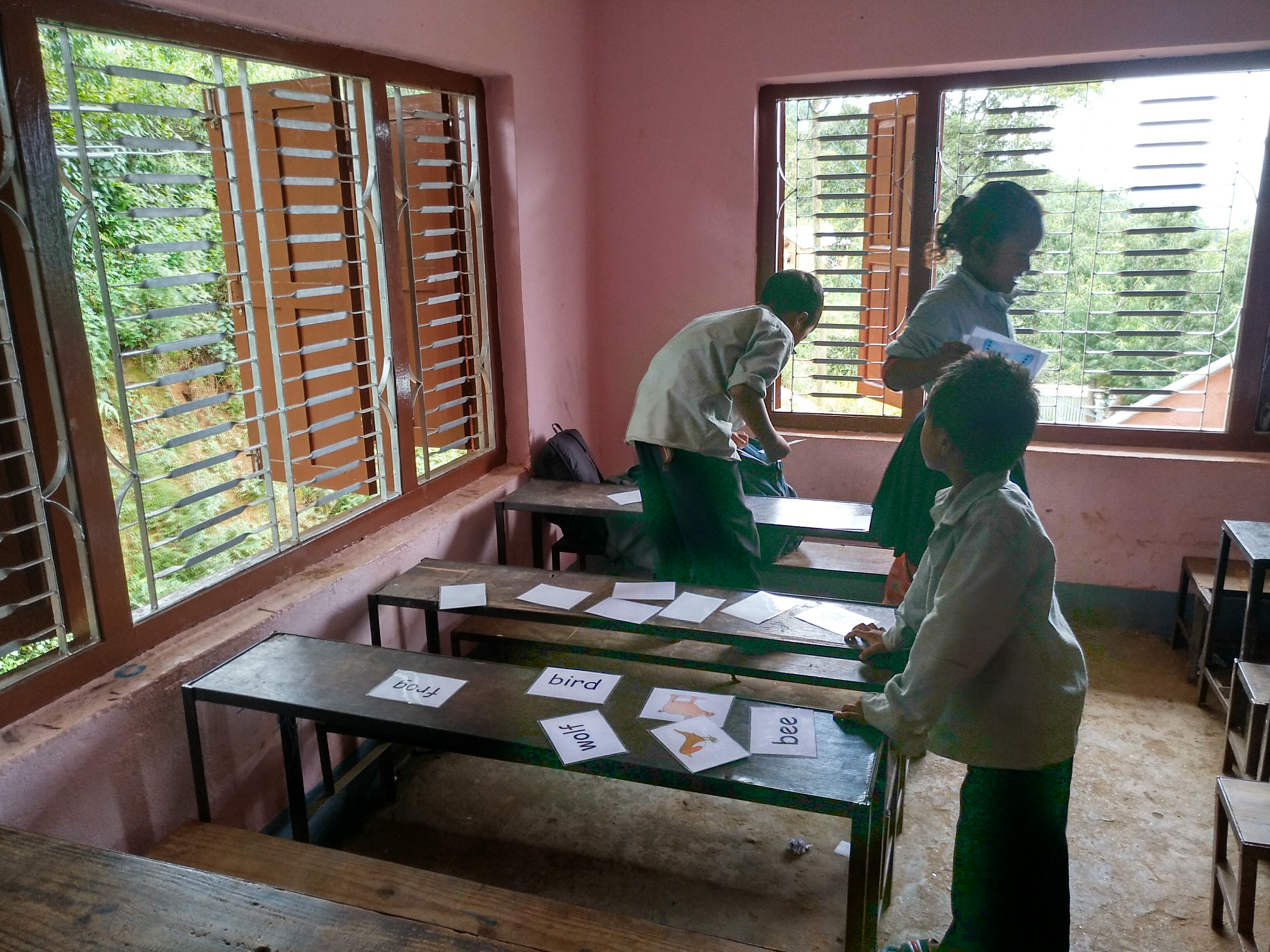 El nivel de inglés de los colegios públicos de Nepal es muy bajo, por lo que nuestro voluntariado consiste en dar clases de inglés a nuestros niños, ya que los profesores no tienen dominio del idioma, además colaboramos con actividades de desarrollo comunitario según las necesidades puestas de manifiesto en cada momento por la Comunidad Local tales como reciclaje, saneamiento, talleres de salud e higiene etc.